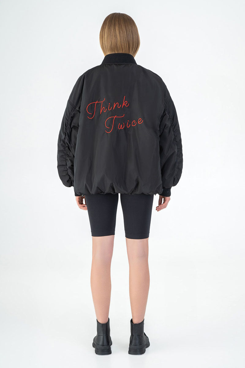 Унікальний двосторонній бомбер THINK TWICE – це дві куртки в одній, ідеальне поєднання сучасного дизайну та функціональності, що надає свободу вибору.