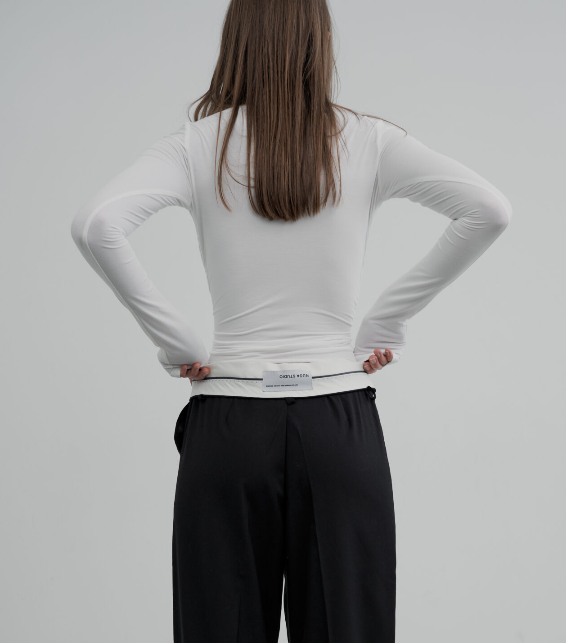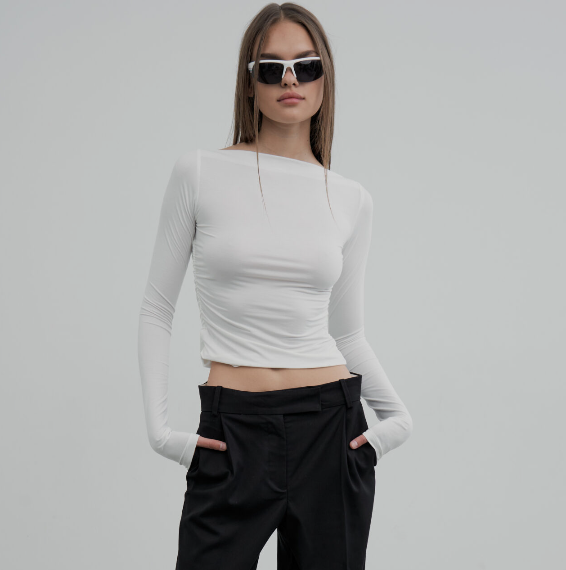 Базовий лонгслів з ніжною, приємною на дотик тканиною. Збірка з обох боків коригує силует та робить можливою посадку на потрібну довжину.
