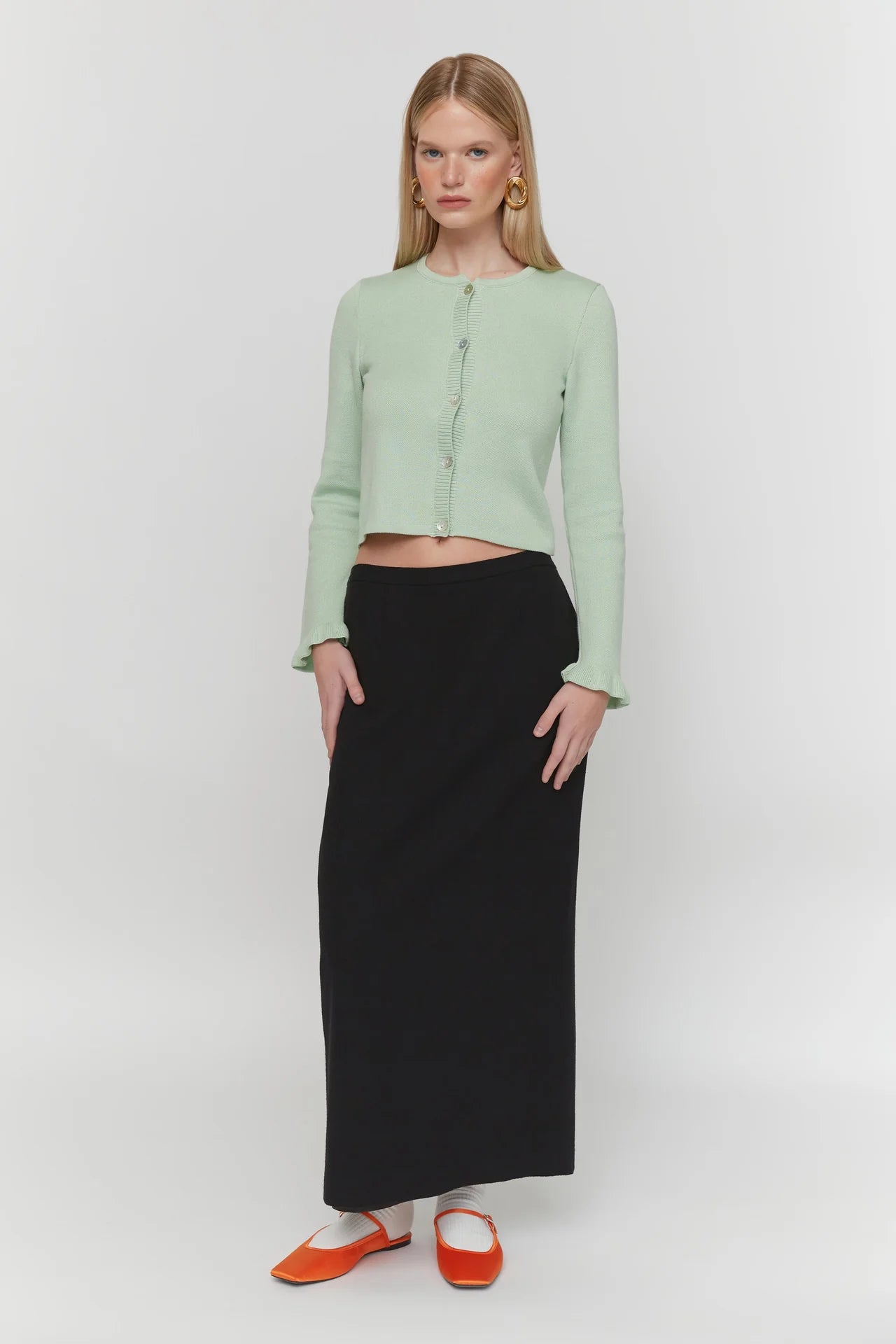 Мʼятний кардиган з рюшею