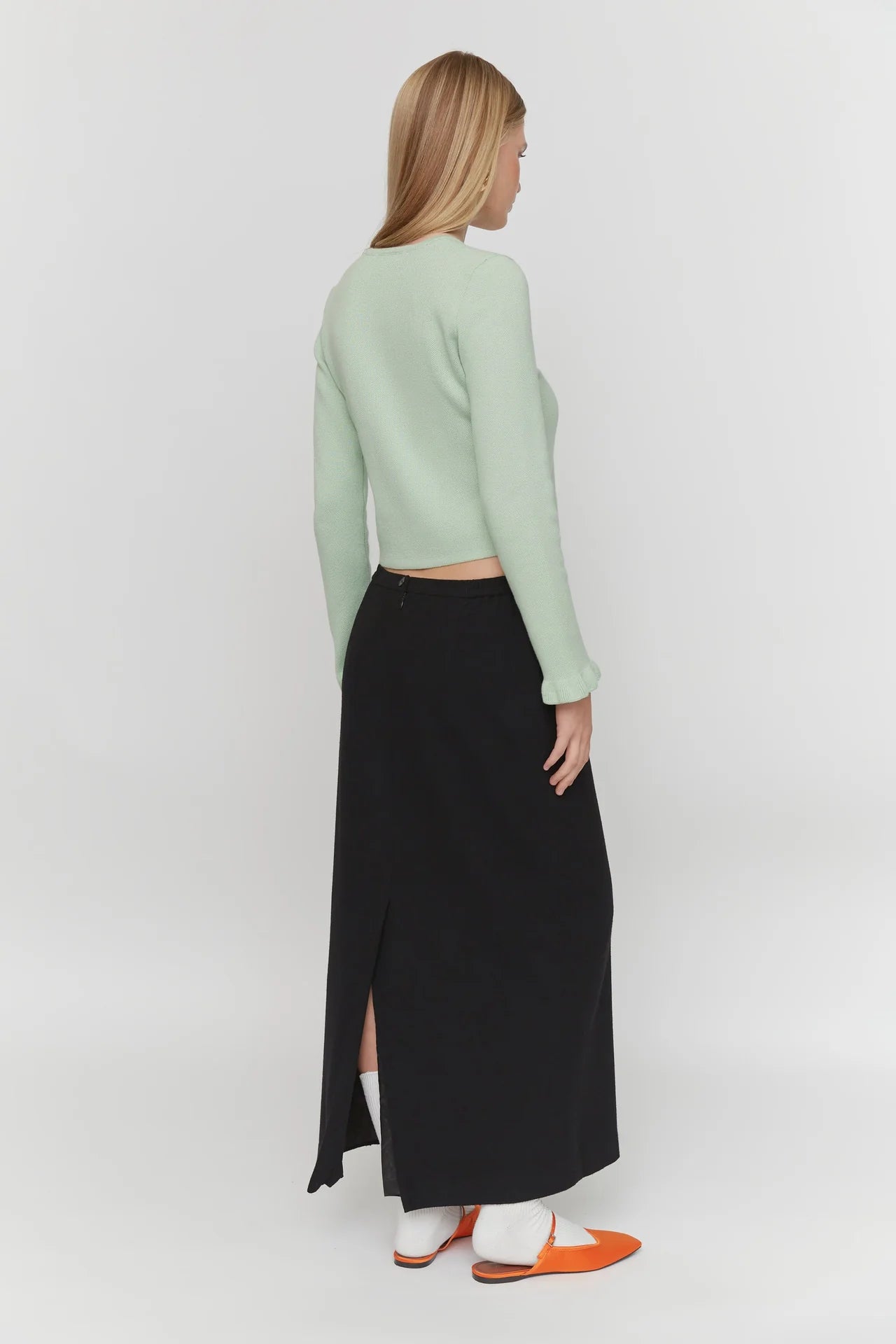 Ідеальний м'ятний, стримана довжина, фактурна рюша, перламутрові ґудзики.
