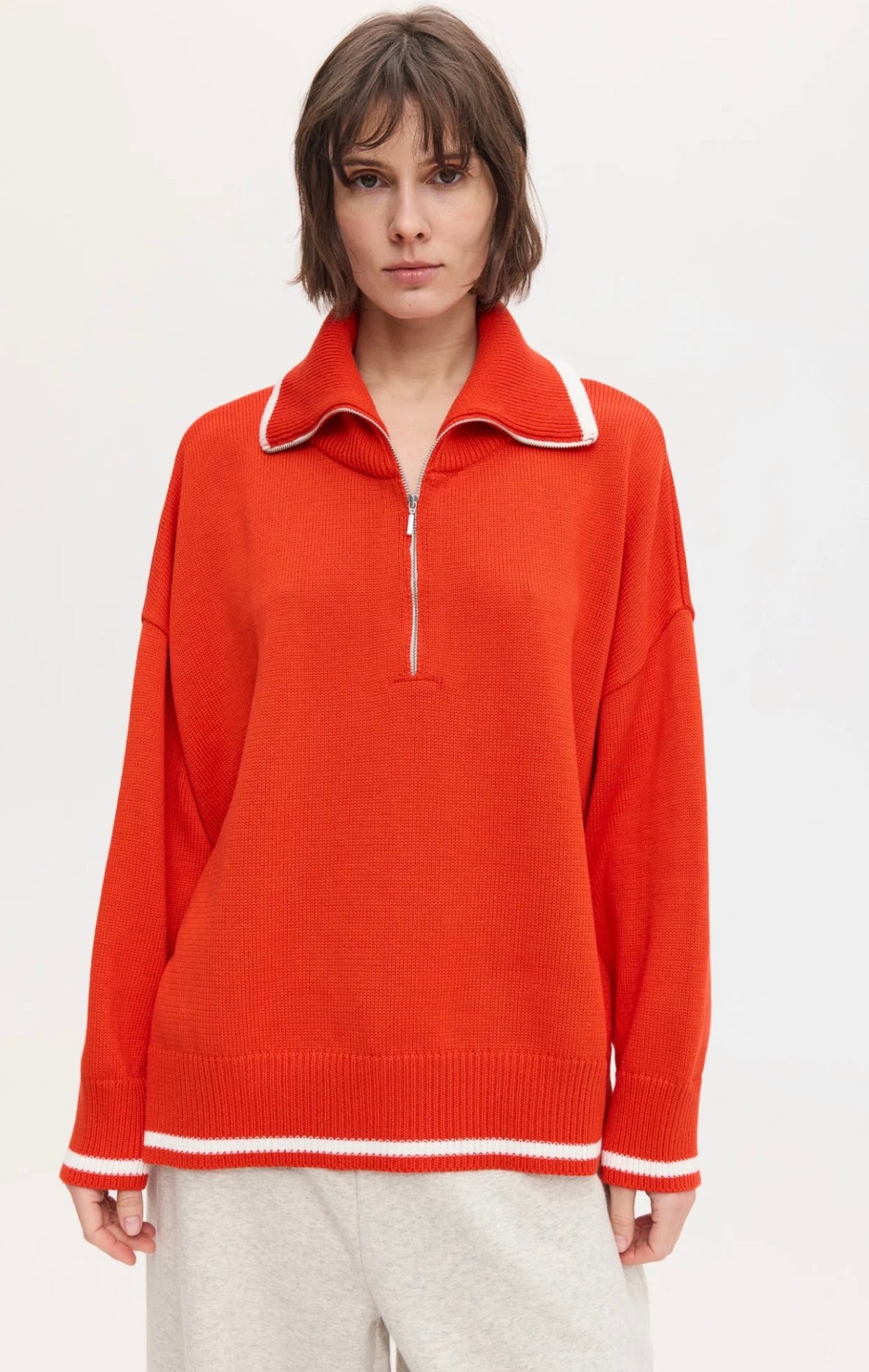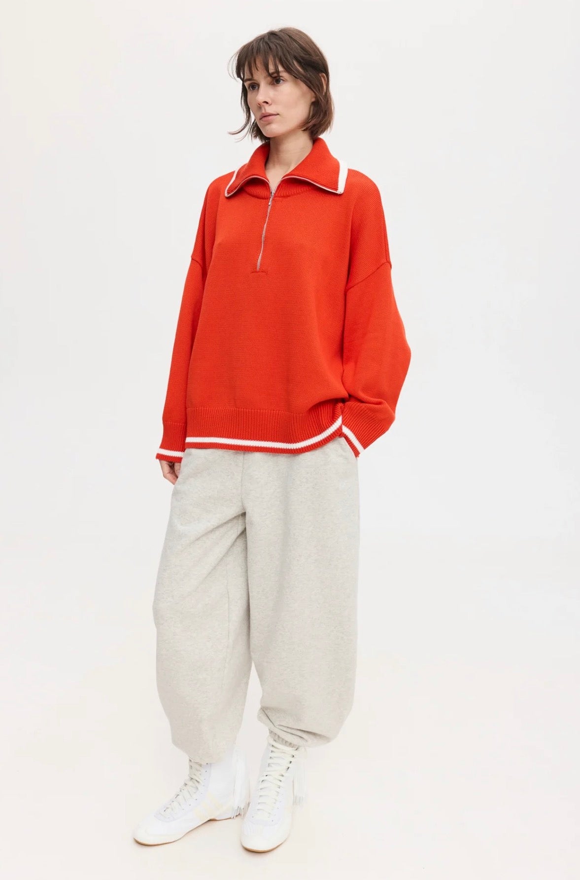 Светр oversize силуету. Високий комір з металевою застібкою.