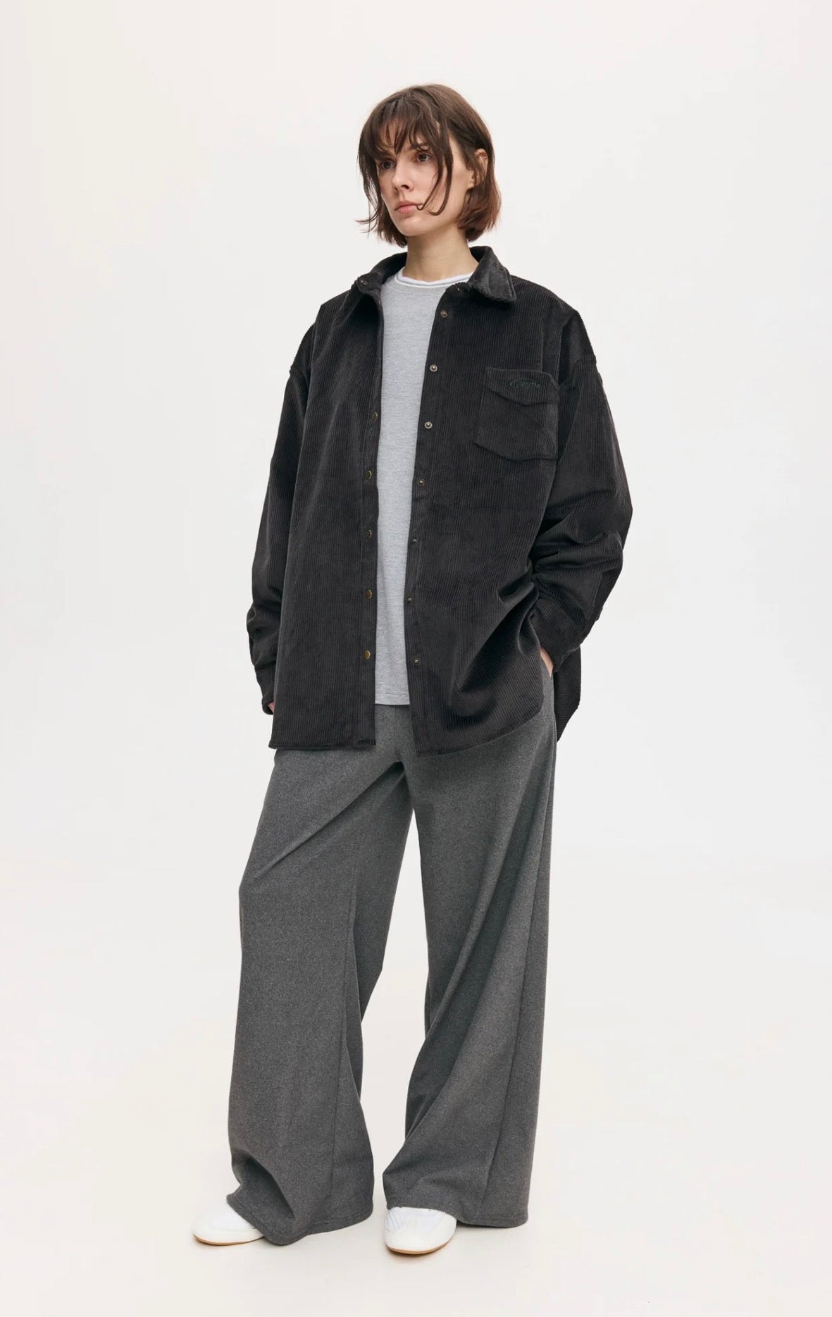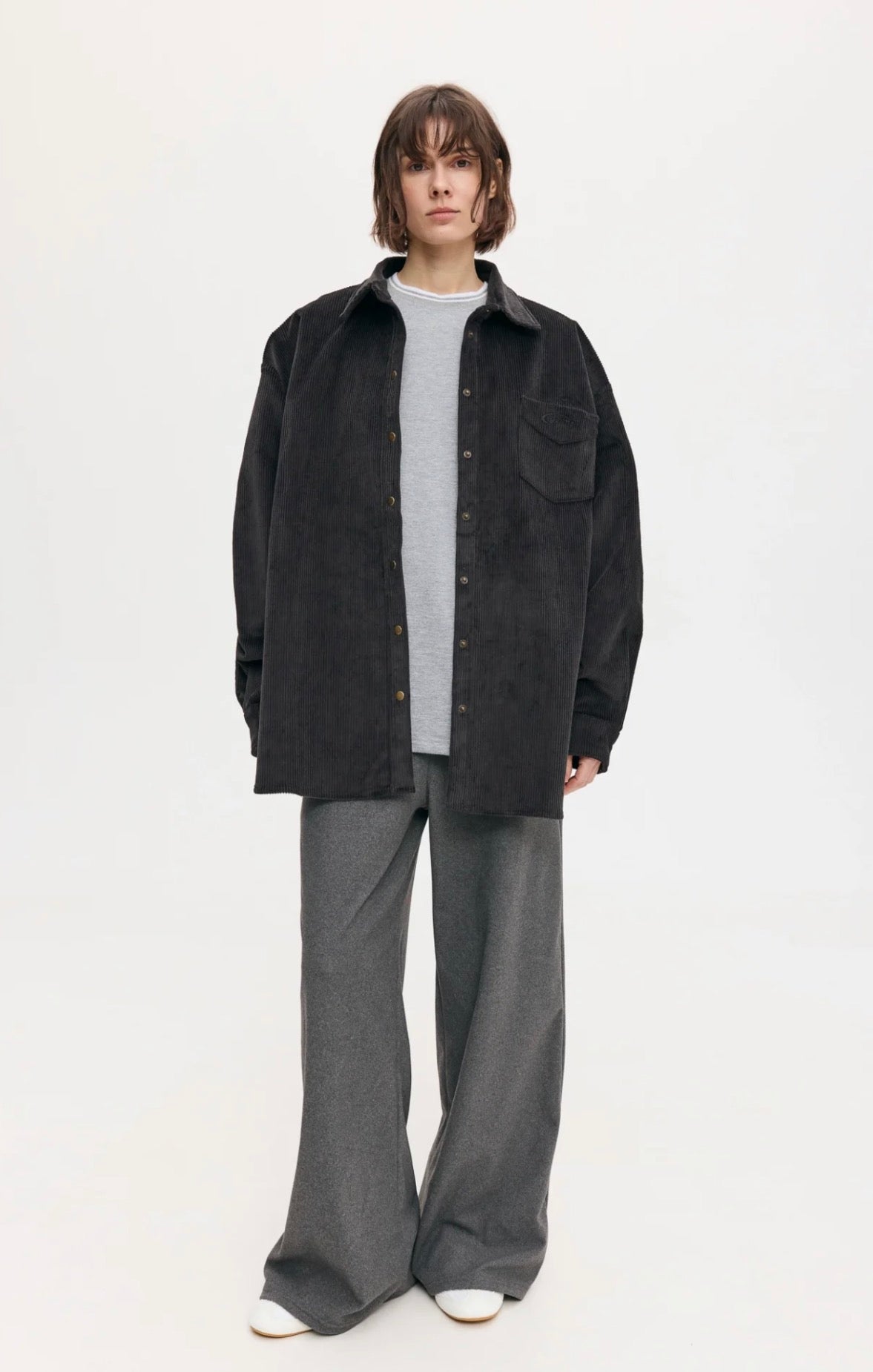 Сорочка oversize силуету на металевих кнопках. Зліва кишеня з вишитим стилізованим логотипом “german.”.